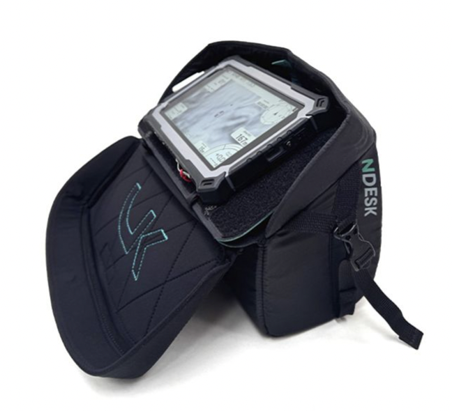 The NDesk is an additional and removable cockpit with pockets that you can add to your harness. It is compatible with any of our seated harnesses, especially the Konvers 3 and the Kooper P. It is very easy to install on the carabiners.